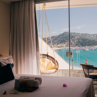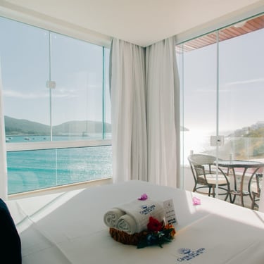 Suítes com vista incrível para o mar em Arraial do Cabo. Localização privilegiada na Praia dos Anjos, conforto e tranquilidade garantidos.