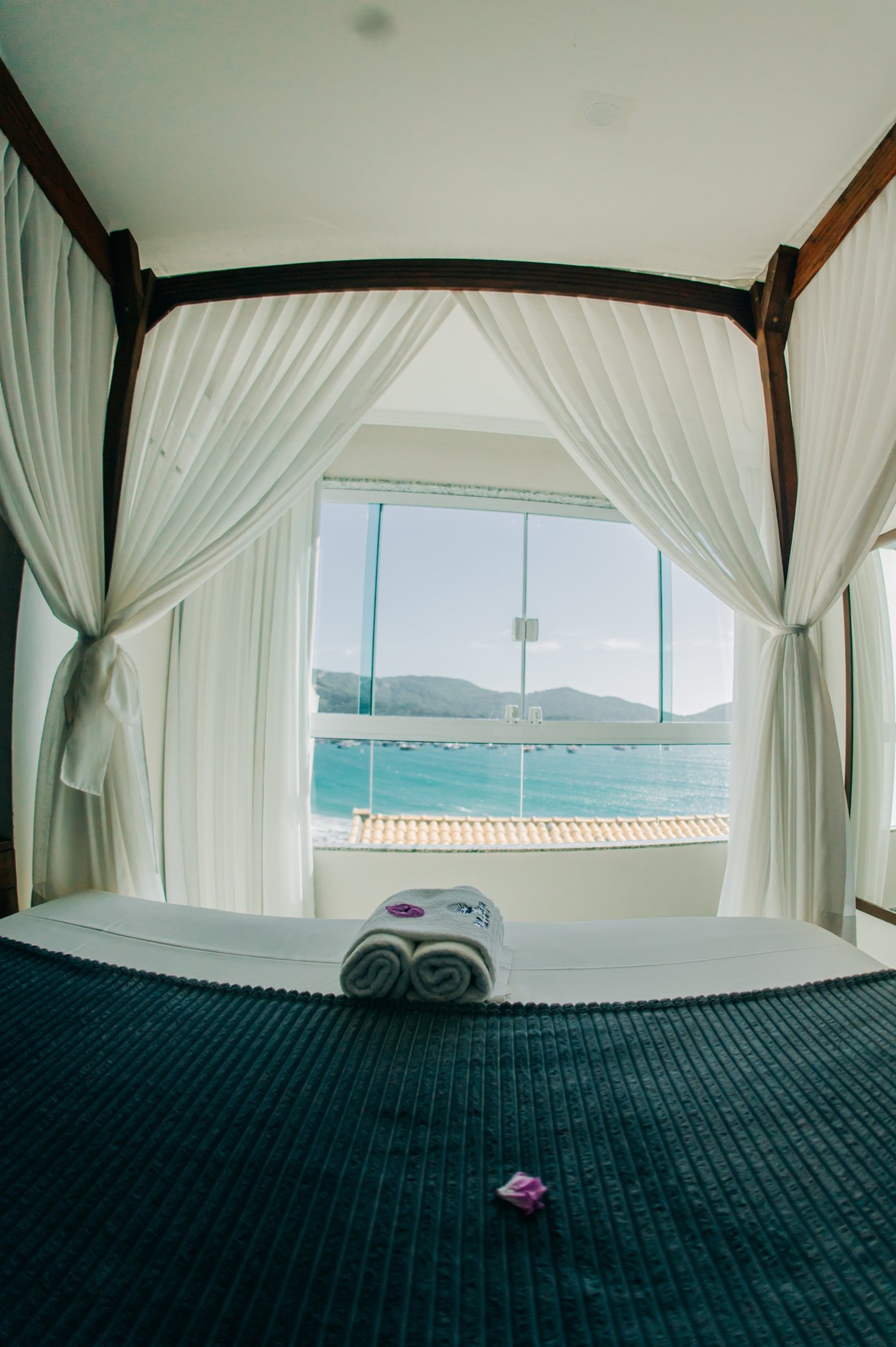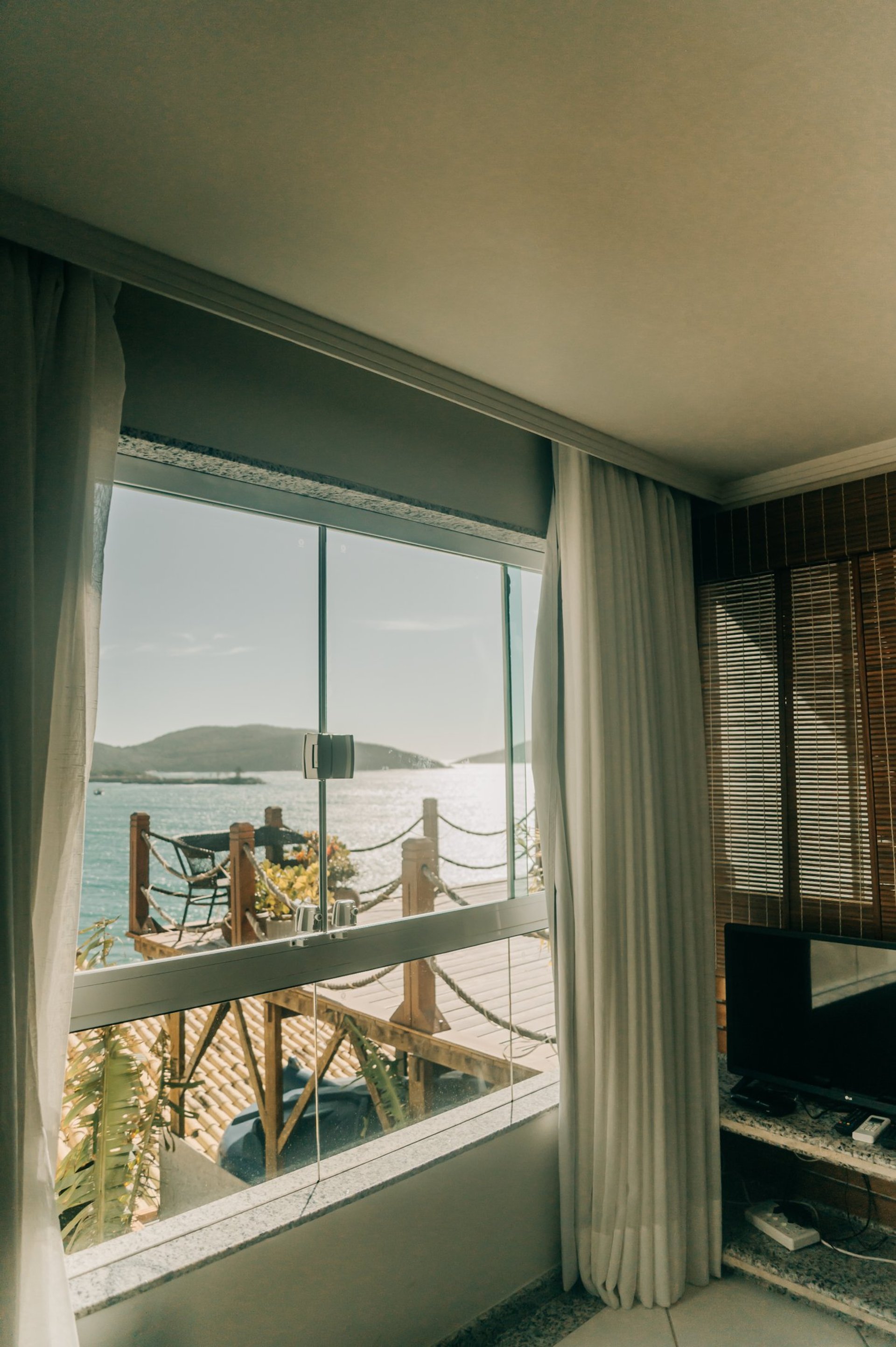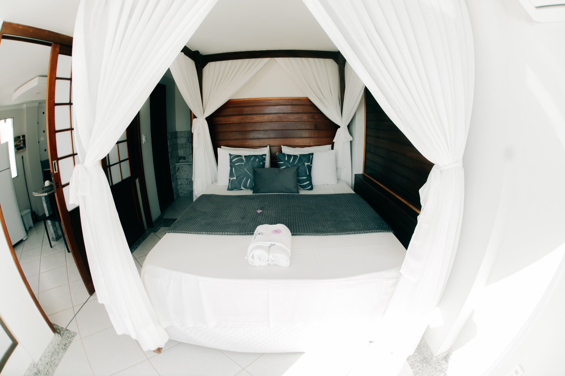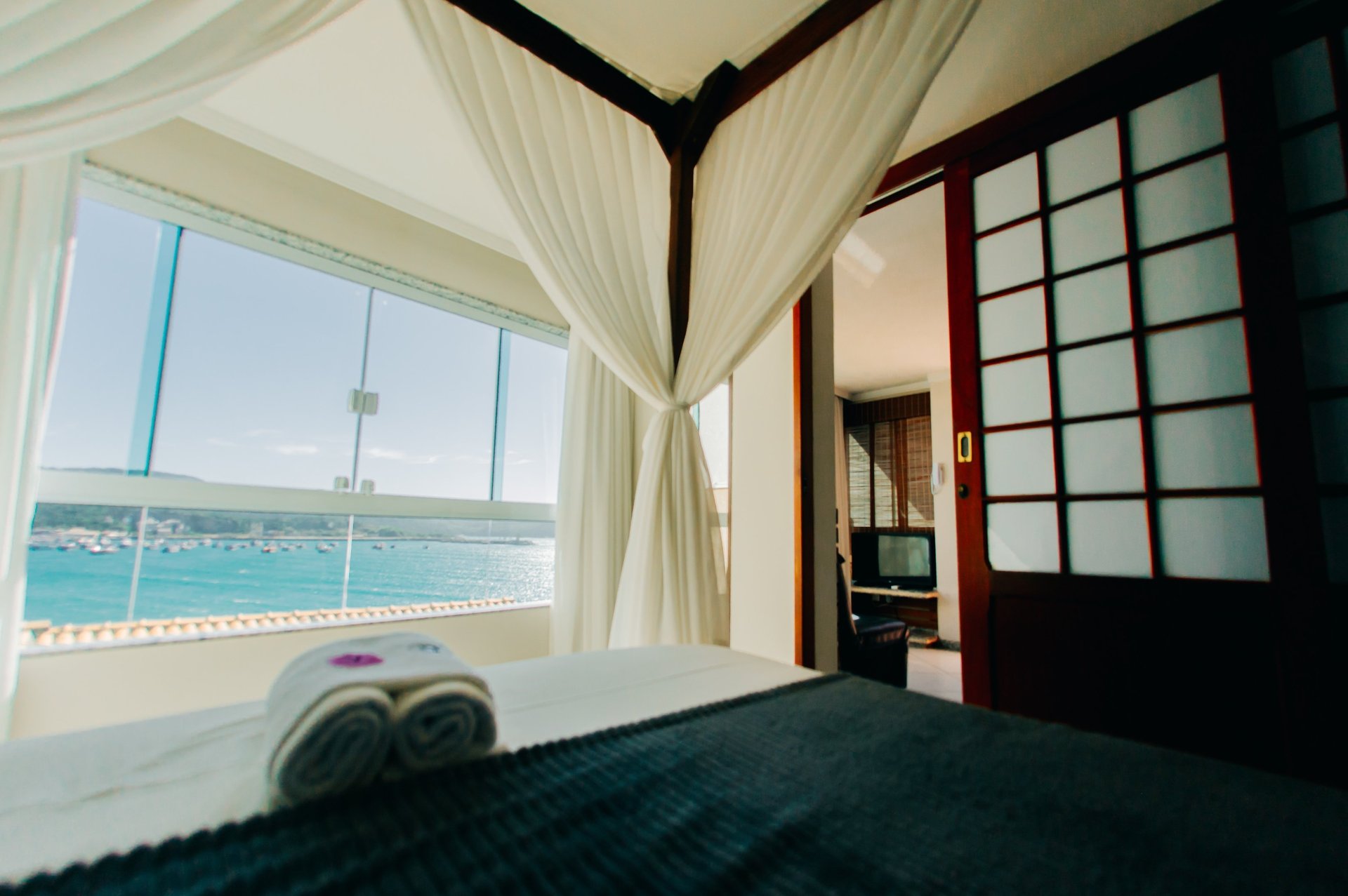 Seu diferencial é a cozinha separada do quarto e a vista para o mar em ambos os ambientes. Os hóspedes ainda têm acesso a uma ampla sacada comum, ideal para relaxar e apreciar o nascer do sol em Arraial do Cabo.
