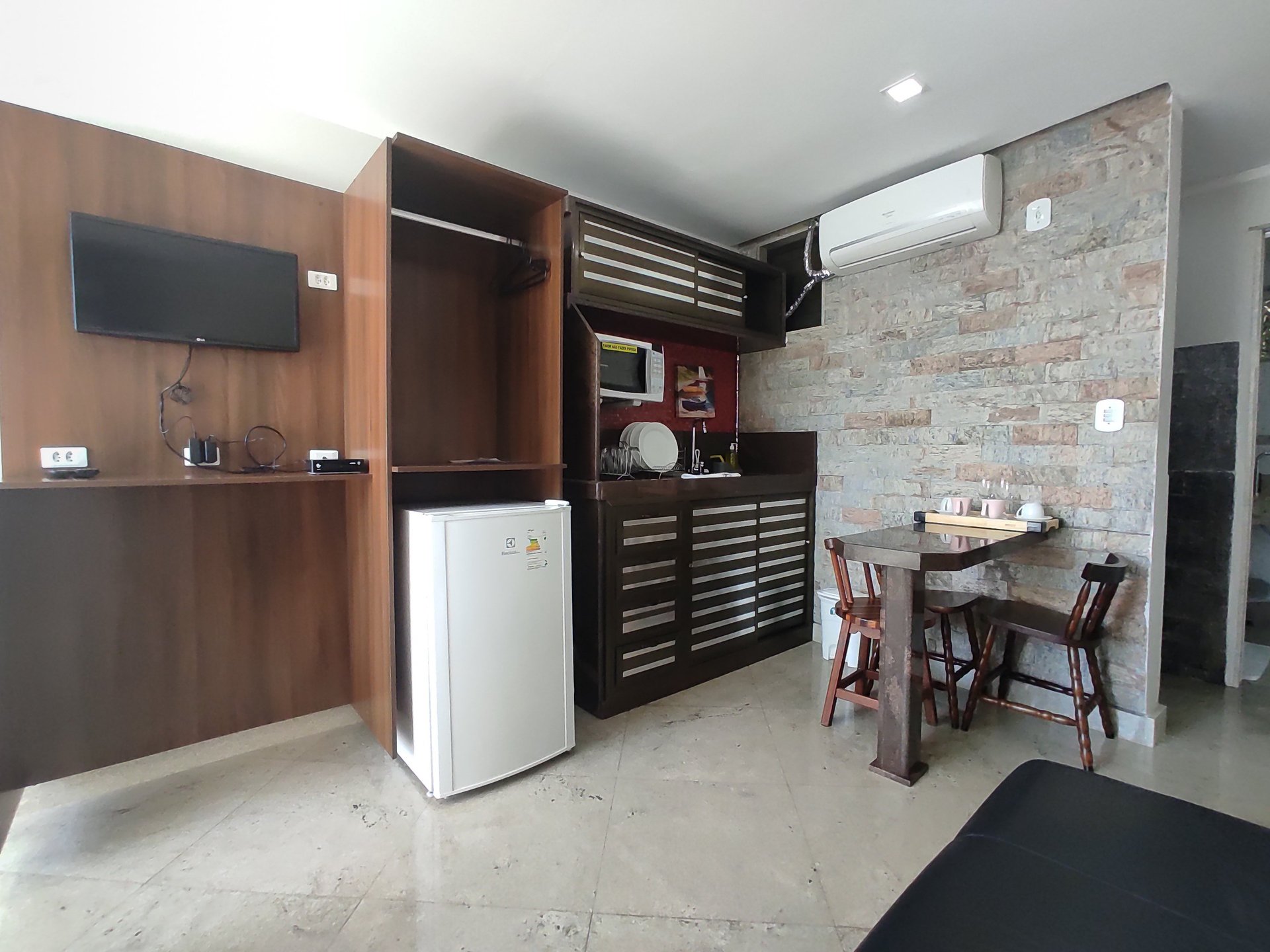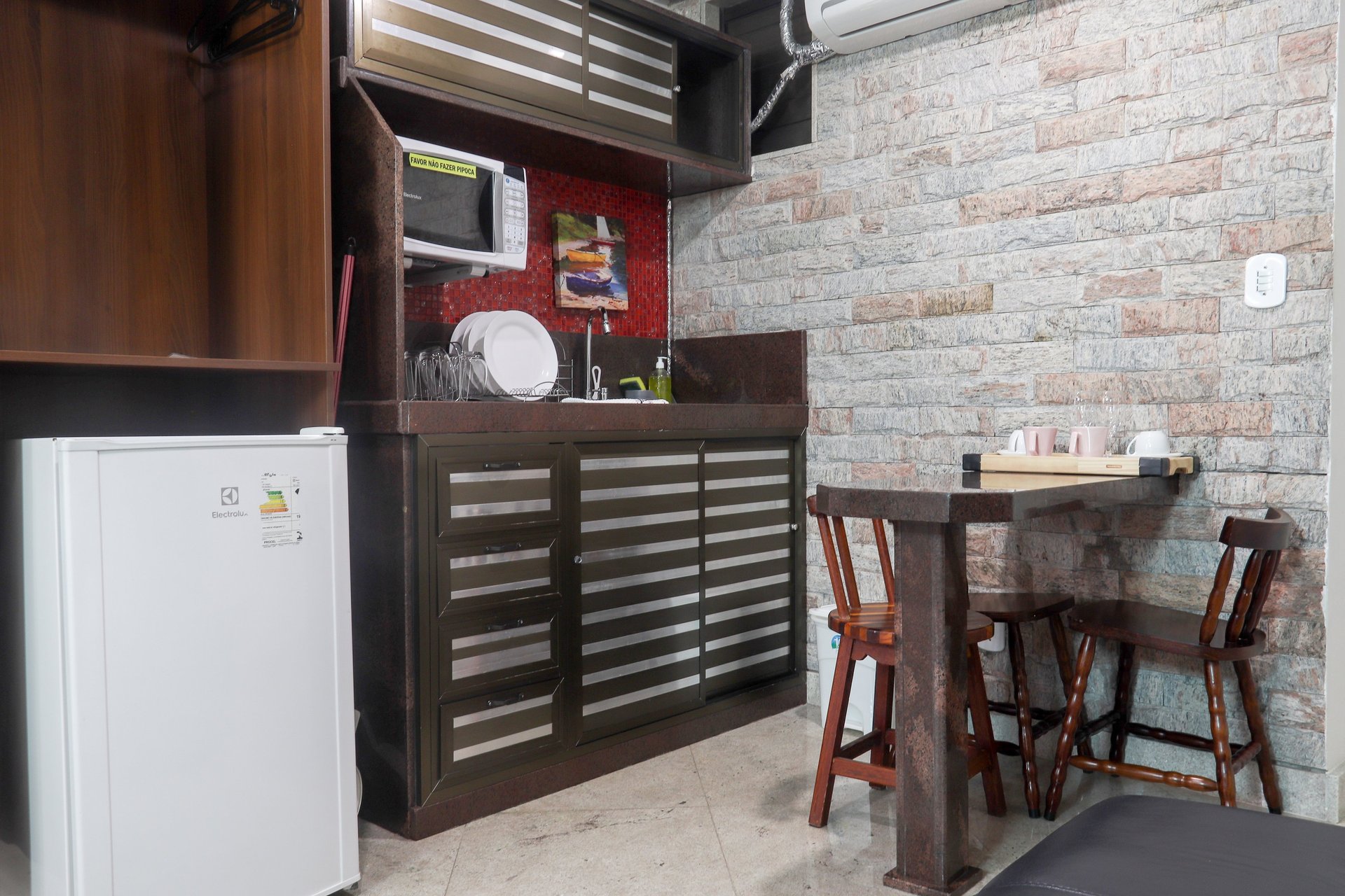 Não oferecemos café da manhã, mas todas as suítes possuem mini-cozinha (sem fogão) equipada para maior autonomia e praticidade.